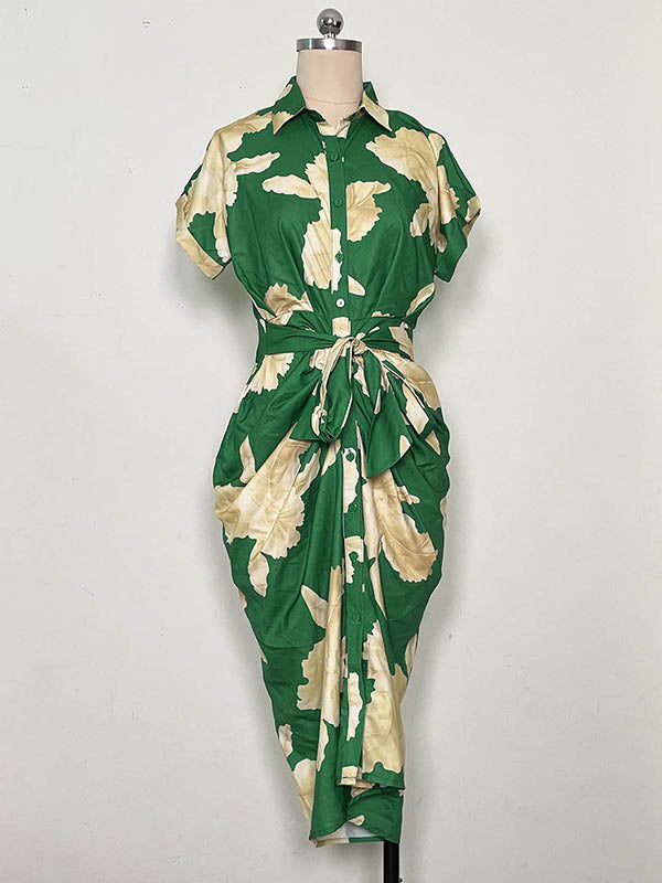 | Feature | Tied Waist . Flower Print . Buttoned . Pleated |
