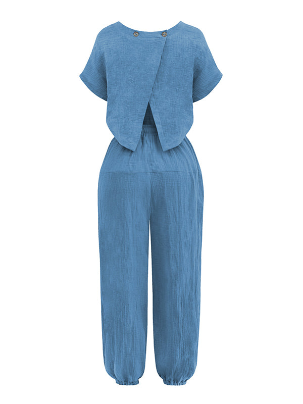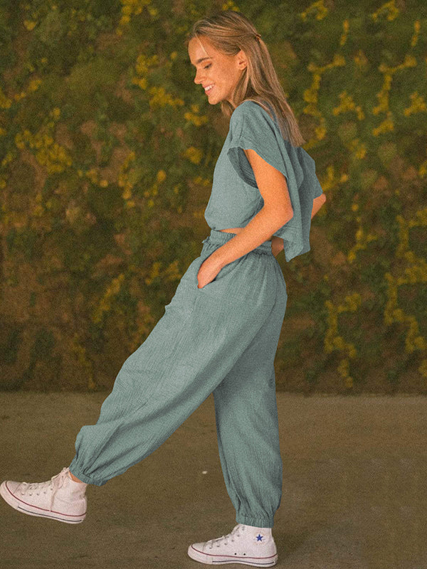 | Style | Loose . Harem pants . Short Sleeves |